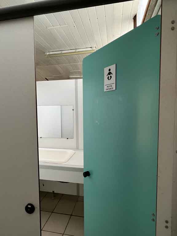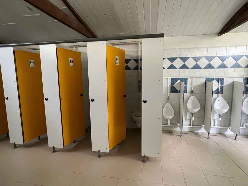 Les bornes d’eau sont situées à proximité des emplacements, et vous avez accès au bloc sanitaires avec douches, lavabos et wc. Egalement à votre disposition une cabine et wc PMR.