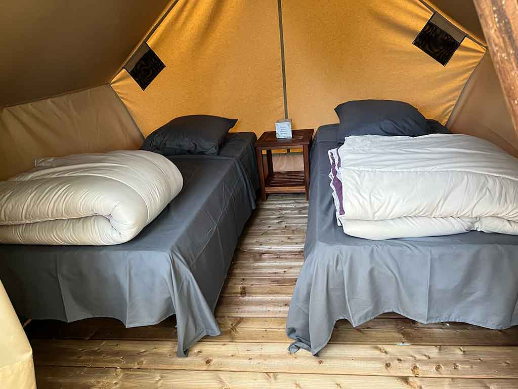 Les parcelles sont grandes et si vous le souhaitez, vous pourrez facilement ajouter une tente ( en supplément ) à côté du locatif